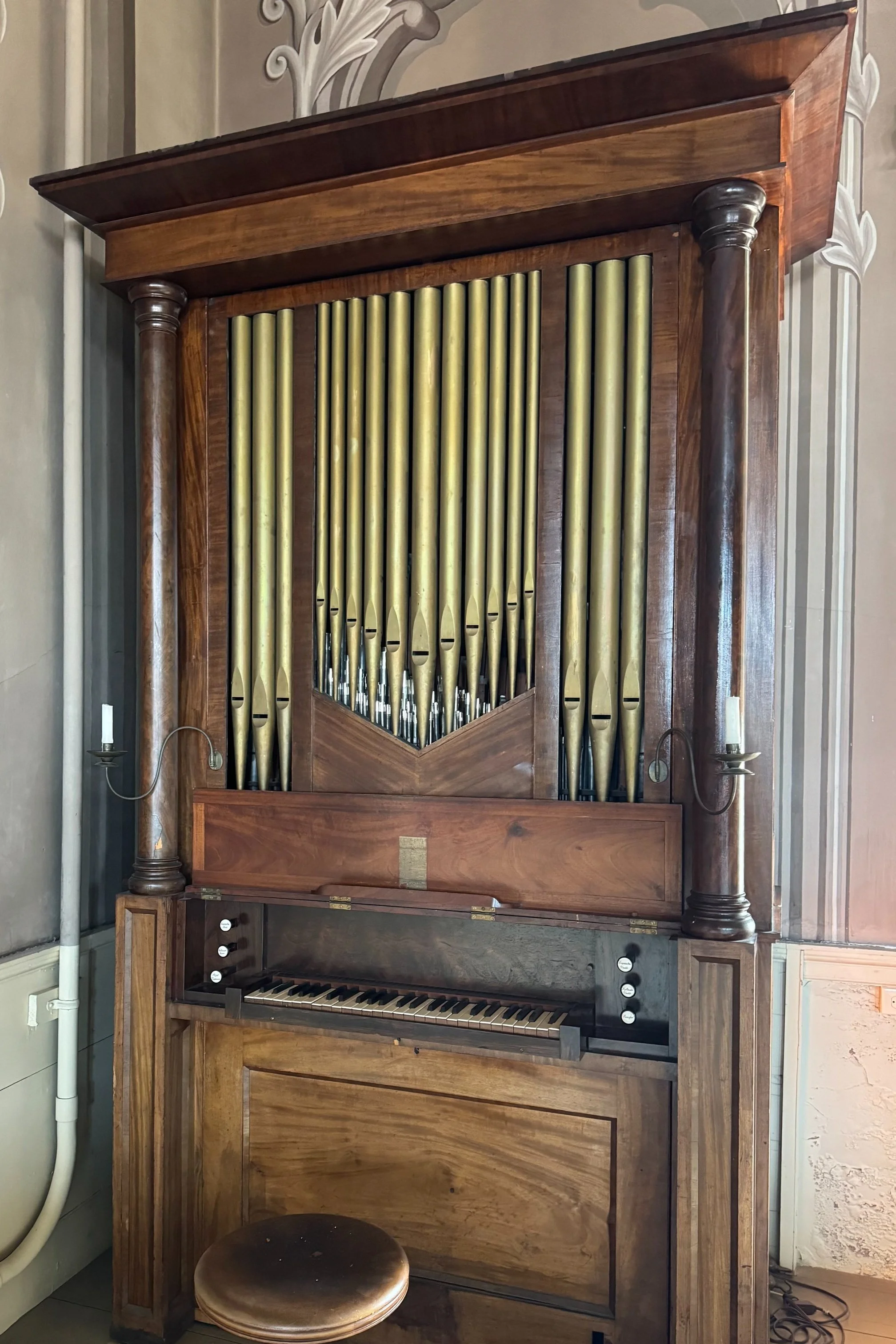 The Brattle Organ, thought to be the country’s oldest playable pipe organ, was imported from England before 1708. It was given to King's Chapel in Boston by Thomas Brattle, treasurer of Harvard College, where it was used for forty years. Later it was acquired by St. Paul's church in Newburyport, Massachusetts, where it was used for eighty years. St. John's Church purchased it in 1836 for use in a new chapel on State Street, which has since been demolished. This organ was renovated in 1963 by C.B. Fisk and sits in the upper right balcony of the sanctuary.