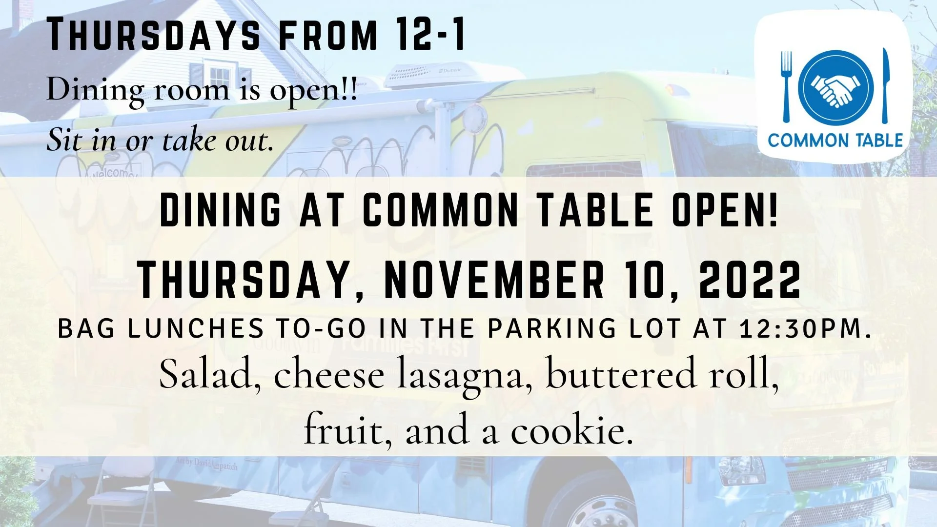 NOTE: Common Table needs volunteers to help bake cookies and clean aprons and towels. Call Judy Roberts at 603-777-2796 or Suzi Raeside at 207-475-6163 if you would like to help.
