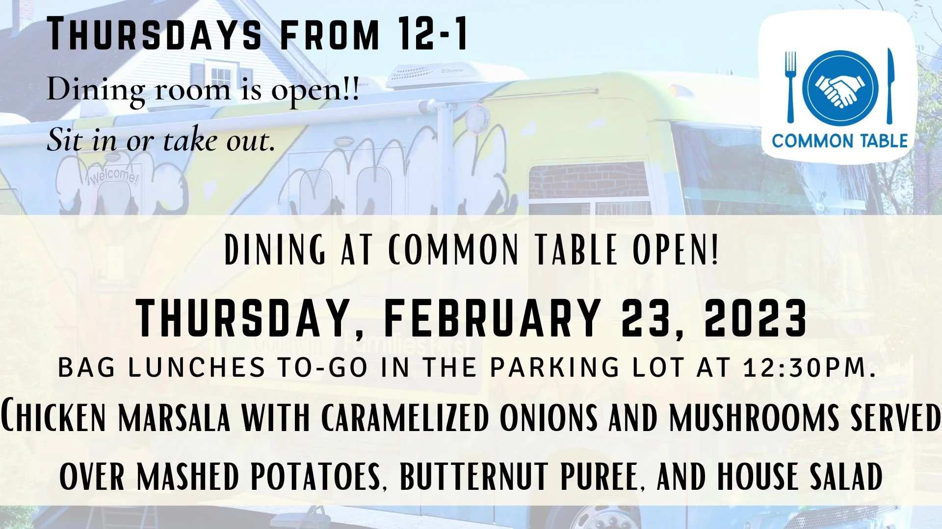 NOTE: Common Table needs volunteers to help bake cookies and clean aprons and towels. Call Judy Roberts at 603-777-2796 or Suzi Raeside at 207-475-6163 if you would like to help.
